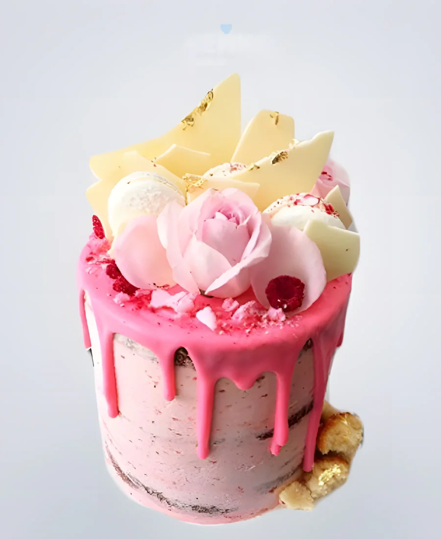Торт с розовой глазурью и белым шоколадом