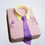 Этот элегантный квадратный торт в виде стильной розовой рубашки с аккуратным сиреневым галстуком выглядит свежо и современно. Нежная пастельная палитра создает утонченный образ, а складки мастики имитируют текстуру ткани. Галстук с геометрическим узором добавляет торту игривости и стиля. Минималистичный дизайн с четкими линиями делает его лаконичным и запоминающимся.