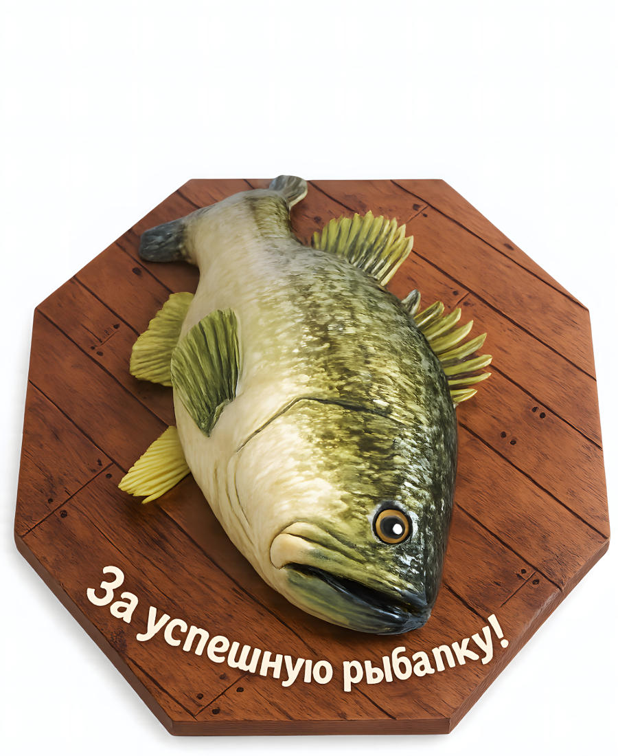 Торт 3D для рыбака в виде большой рыбы из мастики