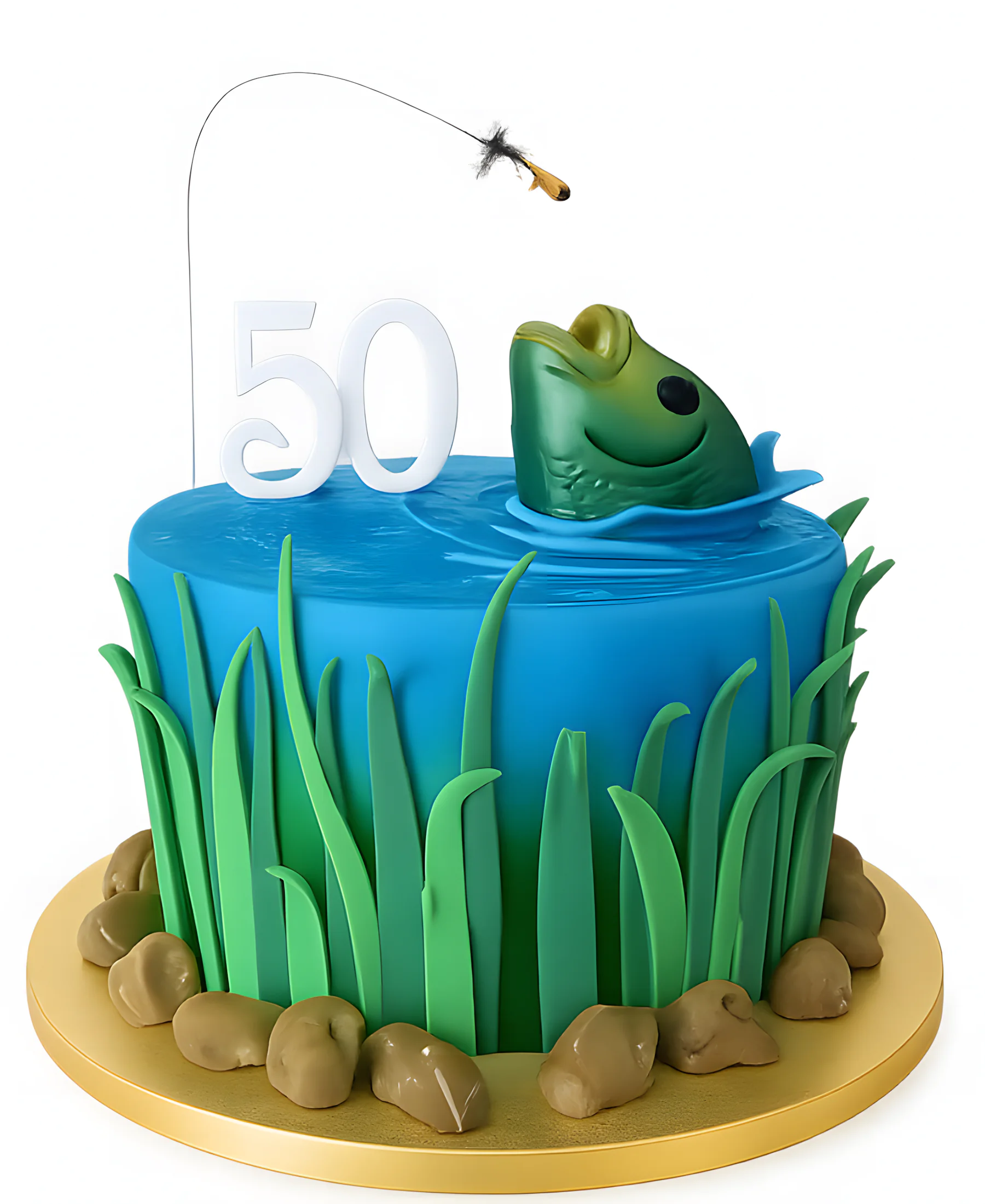 Торт рыбаку в виде озера с рыбой