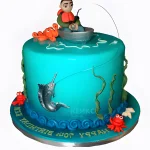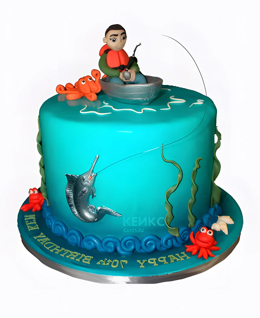 Торт с фигуркой рыбака и рыбами