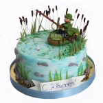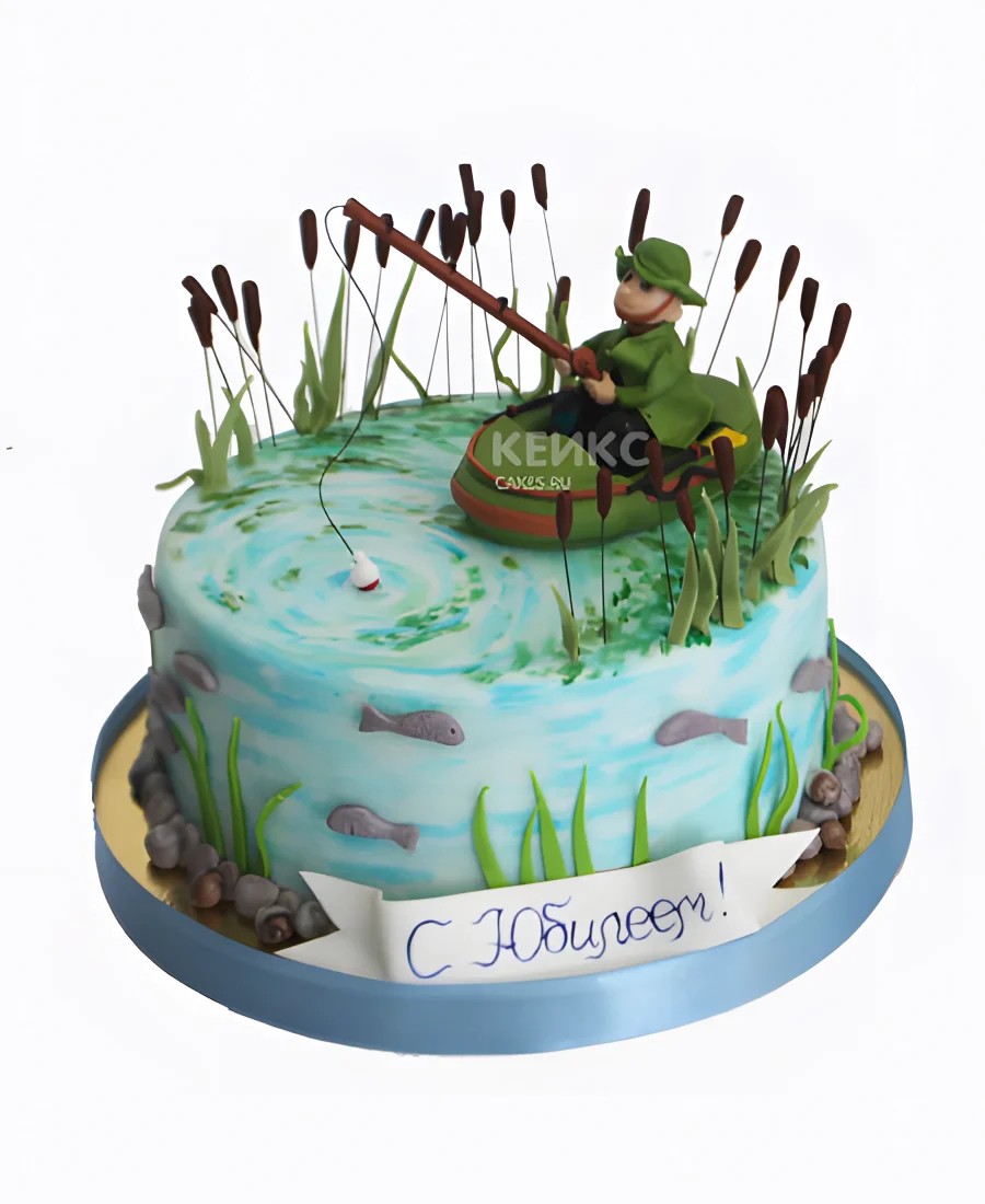 Торт в виде пруда с рыбками на юбилей рыбаку