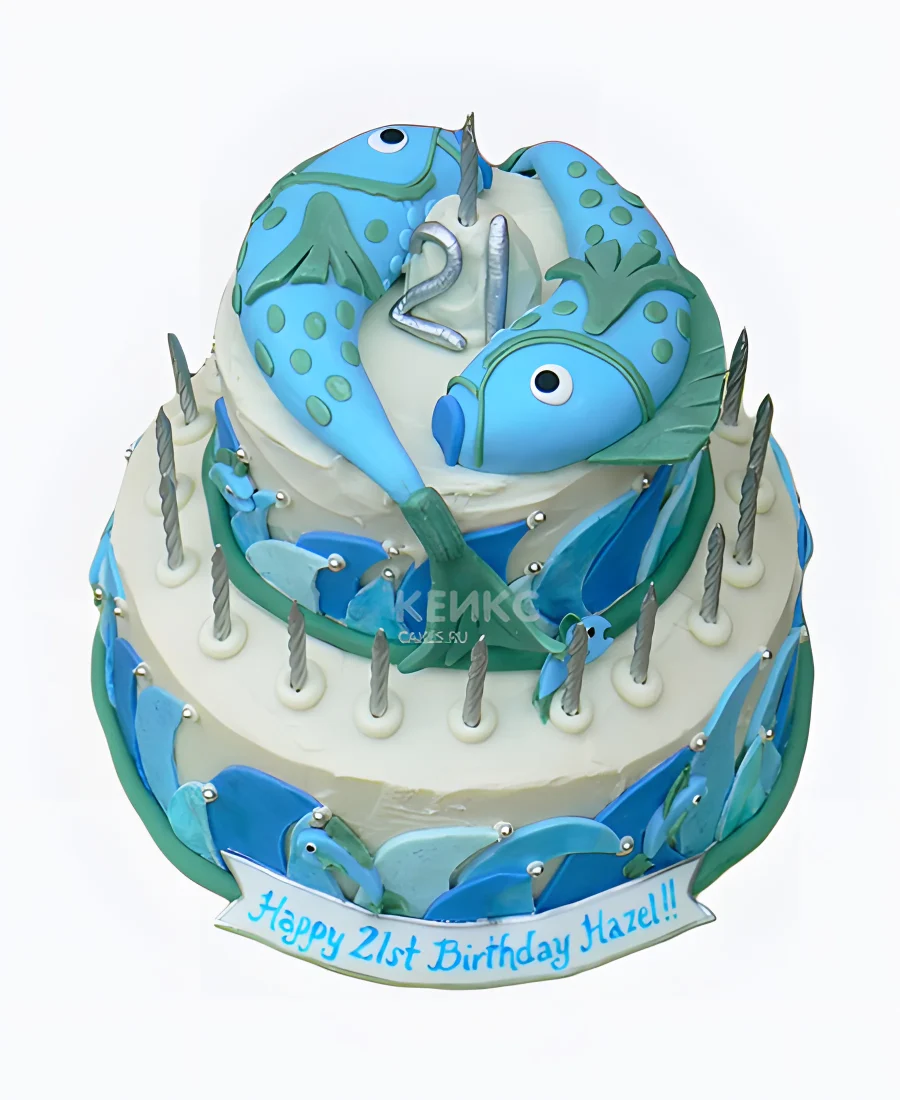 Торт с голубыми рыбками из мастики
