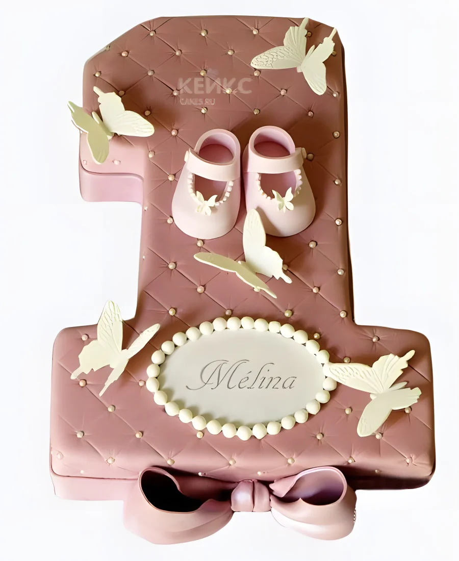 Торт розовый с белыми бабочками и туфельками