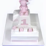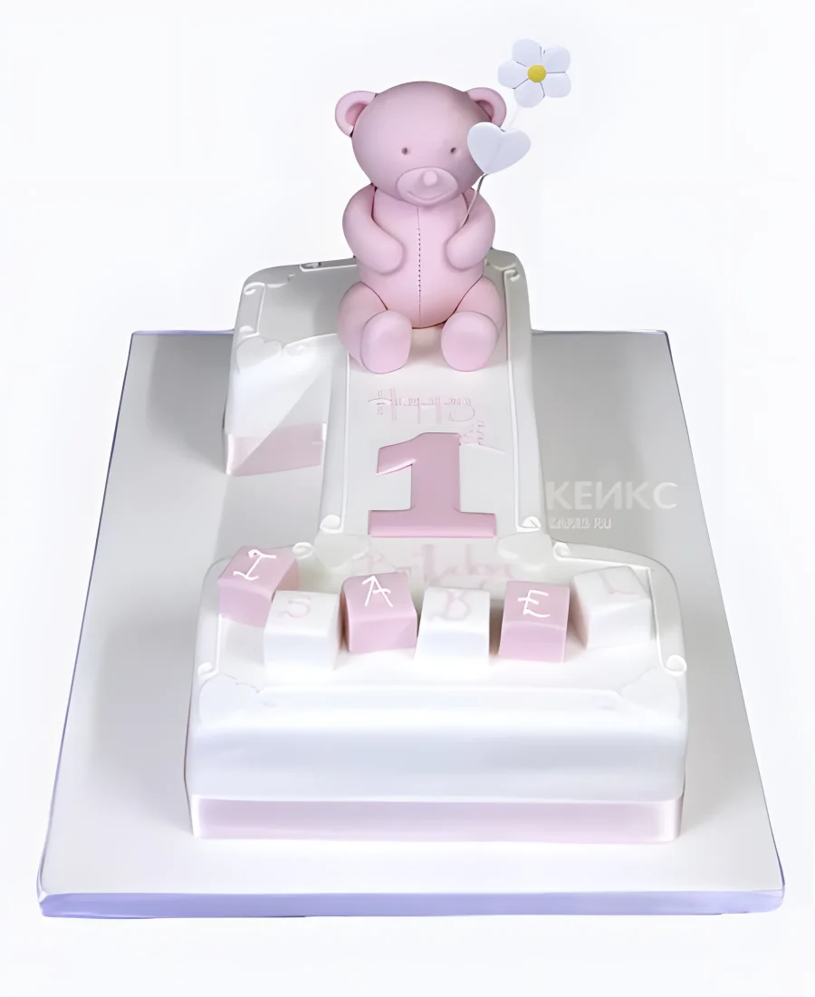 Торт с розовым медведем и ромашкой