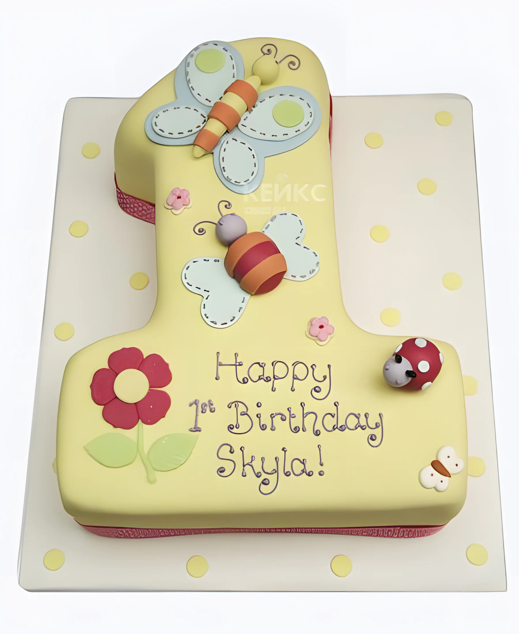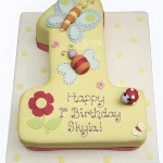 Жёлтый торт с бабочками в виде цифры 1