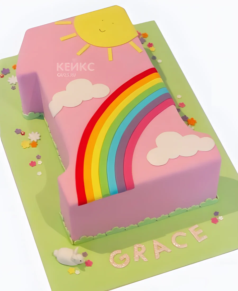 Торт в виде цифры с радугой и солнцем