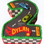 Торт с машинками и дорогой в виде цифры 2 для мальчика