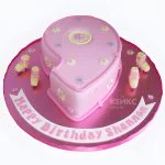 Розовый торт с коньками в виде цифры 9