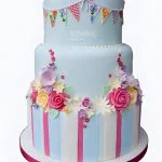Оригинальный трехъярусный торт с гирляндой и цветами