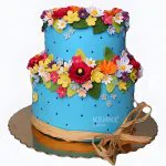 Голубой торт в горошек с цветочками