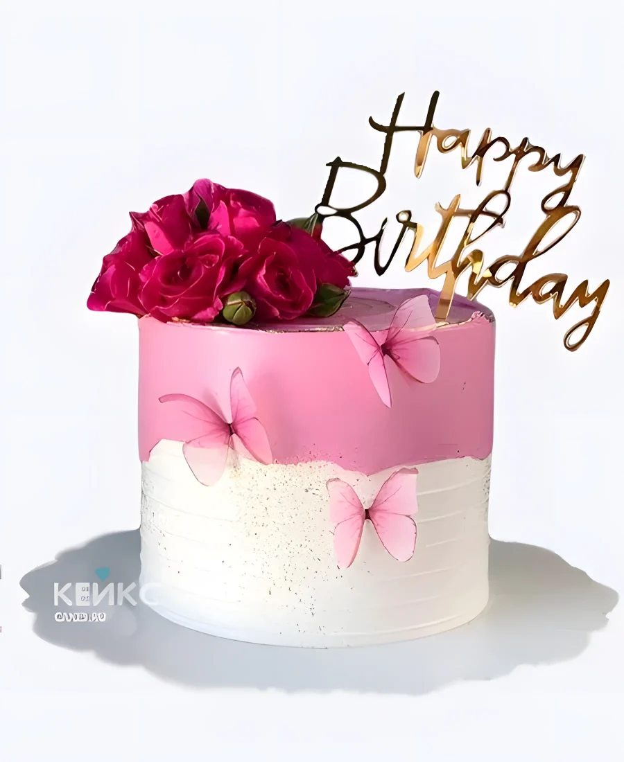 Торт с цветами и бабочками на юбилей бабушке