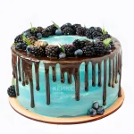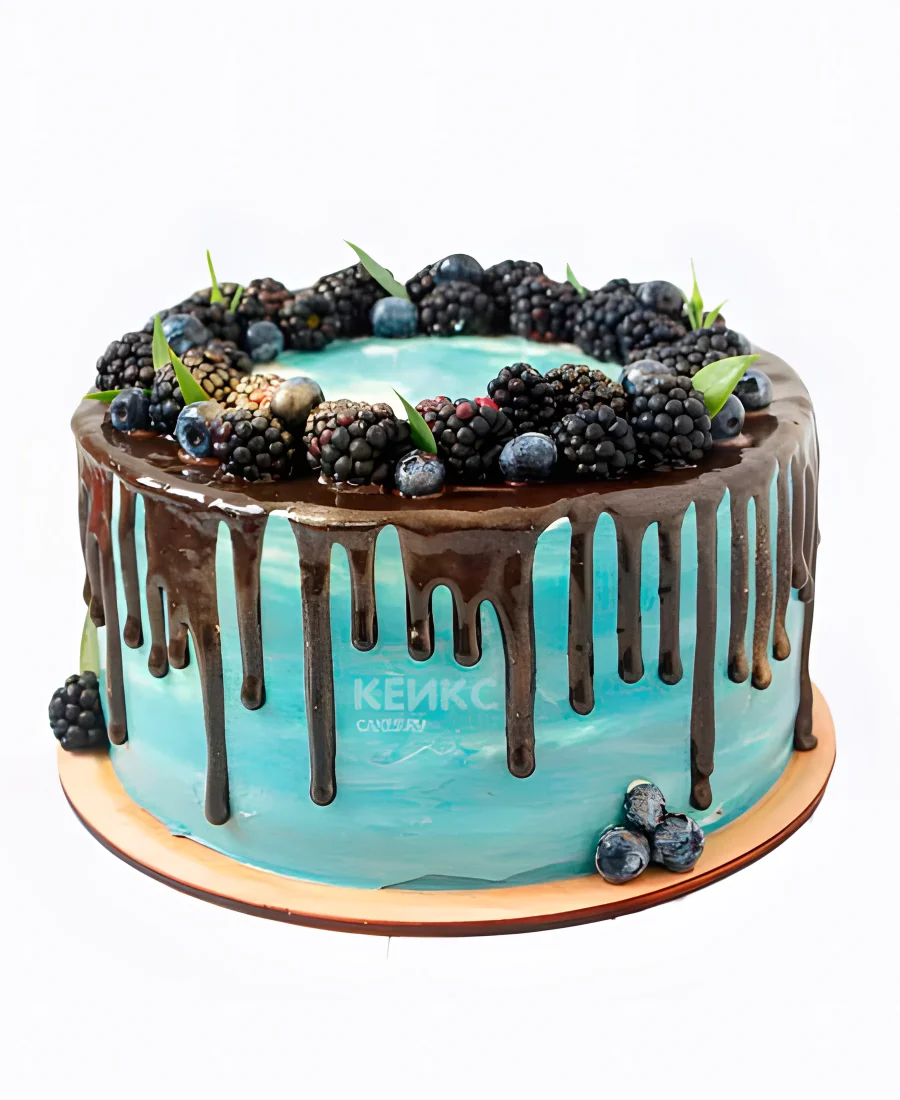 Бирюзовый торт с ежевикой с шоколадными подтеками