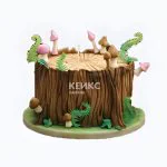 Торт в виде пня с мелкими грибами