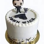 Торт с фигуркой мультяшного Джона Уика и пистолетом