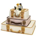 Оригинальный торт с фигурками жениха и невесты на чемоданах