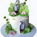 Торт с фотопечатью волнистых попугаев