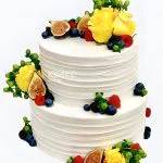 Торт с фруктами белый рифленый с желтыми розами