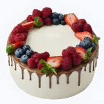 Молочный торт с клубникой, голубикой и малиной