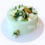 Торт с фруктами нежно-зеленый с киви и лаймом