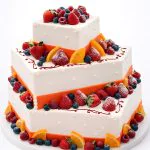 Трёхъярусный квадратный торт с ягодами