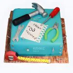 Бирюзовый торт с инструментами и цифрой