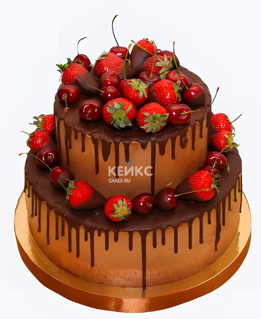 Торт с клубникой и вишней Фондю
