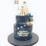 Этот торт словно переносит в бескрайние просторы вселенной. Два яруса, покрытые гладкой мастикой глубокого синего оттенка, напоминают ночное небо. Золотые и серебряные звезды, мерцающие планеты и тонкие линии орбит создают эффект космического путешествия. Торт выглядит как миниатюрная галактика, завораживающая своей таинственностью и красотой. Каждая деталь продумана до мелочей, создавая ощущение волшебства и безграничного пространства.