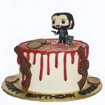 Торт с красными подтеками и мультяшной фигуркой Джона Уика