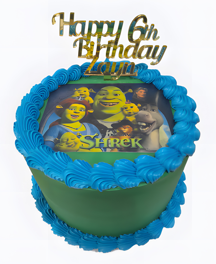 Торт с кремовой каемкой и фотопечатью Шрека