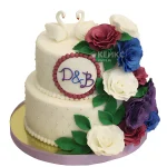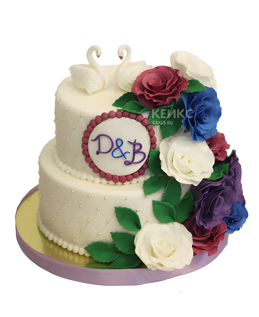 Цветочный торт с лебедями и инициалами