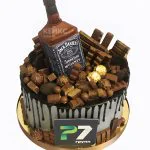 Дорогой торт с логотипом и бутылкой виски с шоколадом