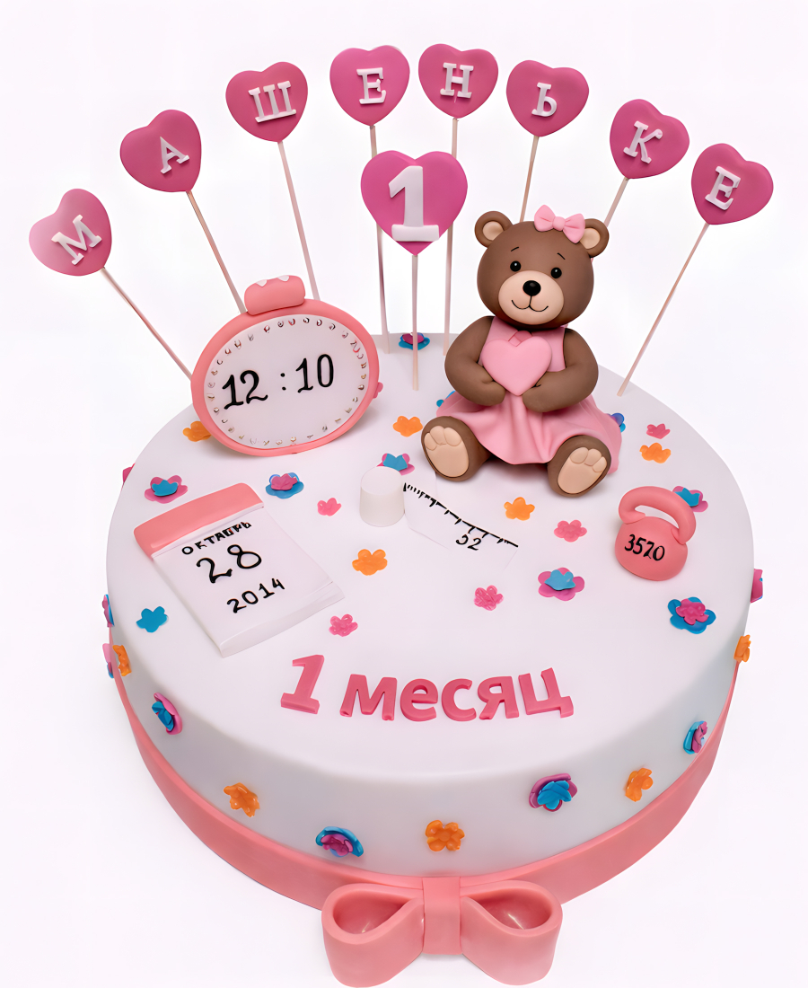 Розовый торт на 1 месяц для девочки