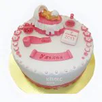 Торт с розовыми надписями и младенцем