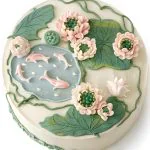 Торт с милыми кувшинками и рыбками в пруду