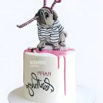 Торт с надписью и мопсом