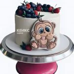Этот торт — настоящая сказка в пастельных тонах! Нежная кремовая поверхность украшена россыпью свежих ягод, создавая ощущение летнего утра. Центральным элементом стал очаровательный пряник в виде улыбающейся обезьянки, который добавляет торту игривости и тепла. Мягкие персиковые и кремовые оттенки сочетаются с сочными акцентами малины и черники, делая торт визуально легким и воздушным. Такой десерт словно приглашает в мир добрых историй и сладких моментов.
