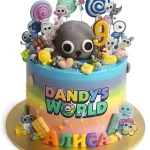 Торт с персонажами Денди Ворлд и мастичными леденцами на 9 лет