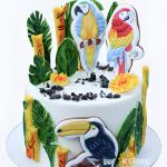 Торт с попугаями и декором из пряников