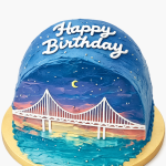 Торт с рисунком моря и моста