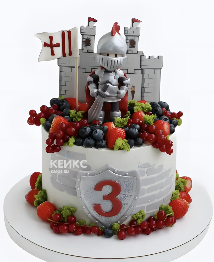 Торт с рыцарем, замком и ягодами