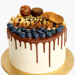 Торт с шоколадными подтеками и ягодами