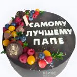 Этот торт создан для настоящих героев — любящих отцов. На нежном кремовом покрытии расположились сочные ягоды, словно яркие акценты на холсте. Торт украшен трогательной аппликацией с надписью, которая сразу создаёт тёплую атмосферу семейного праздника. Сочетание белого и насыщенных ягодных оттенков делает его визуально лёгким и праздничным. Простая круглая форма подчёркивает душевность момента, а декор выглядит искренним и продуманным.