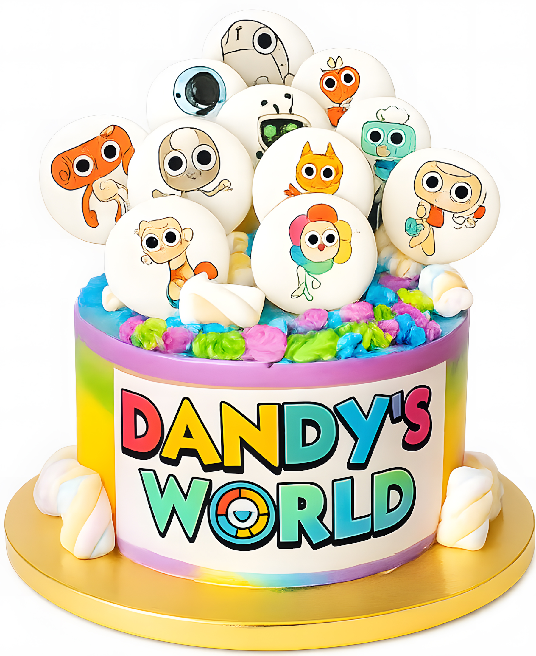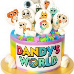 Торт с топперами по тематике Денди Ворлд и зефирками