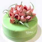 Торт с тюльпанами и зеленой зеркальной глазурью