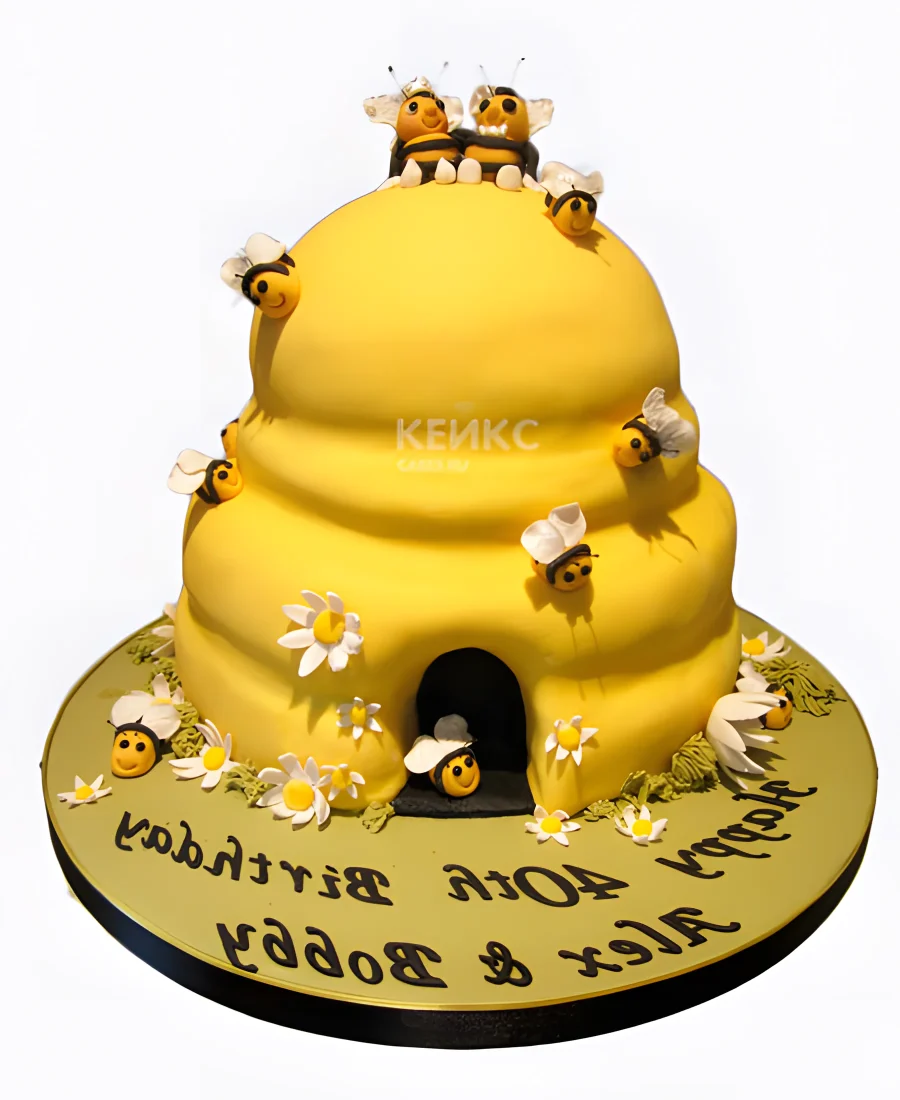 Солнечный желтый торт с ульем