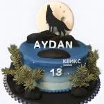 Этот торт — словно зимняя сказка, застывшая в сладком воплощении. На белоснежной мастике, напоминающей свежий снег, гордо стоит волк с пронзительным взглядом, окруженный ажурными елочными ветками. Иней на ветвях и холодное сияние голубых оттенков создают атмосферу заснеженного леса. Каждая деталь, от фактурной шерсти волка до хрупких ледяных узоров, проработана с удивительной точностью, словно мастер вырезал их из самого морозного утра.
