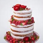 Двухъярусный голый торт со свежими ягодами малины и клубники
