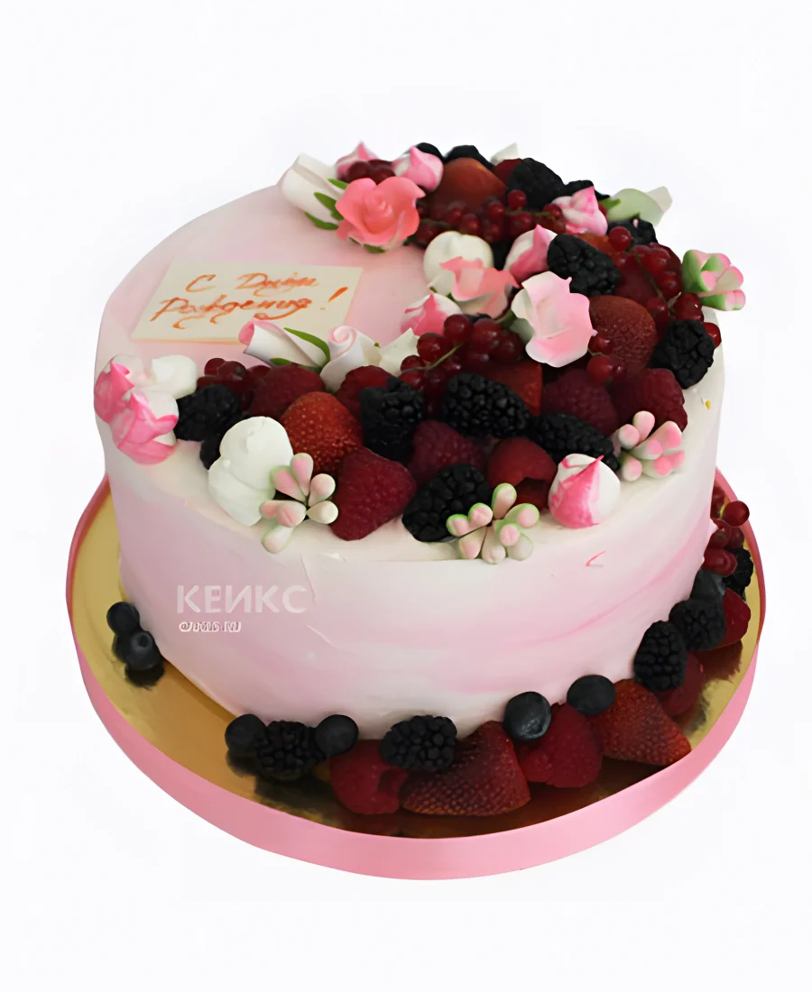 Торт с ягодами и цветами