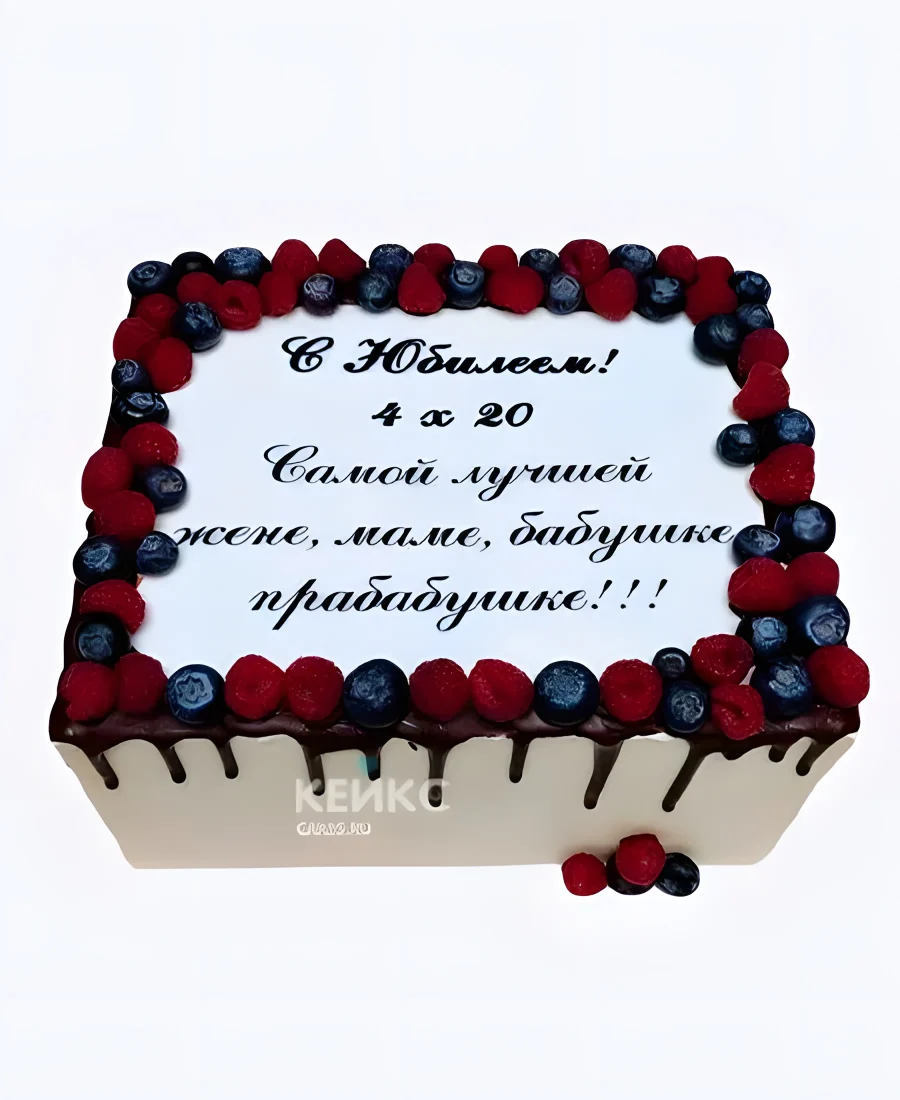 Прямоугольный торт с ягодами на юбилей бабушке